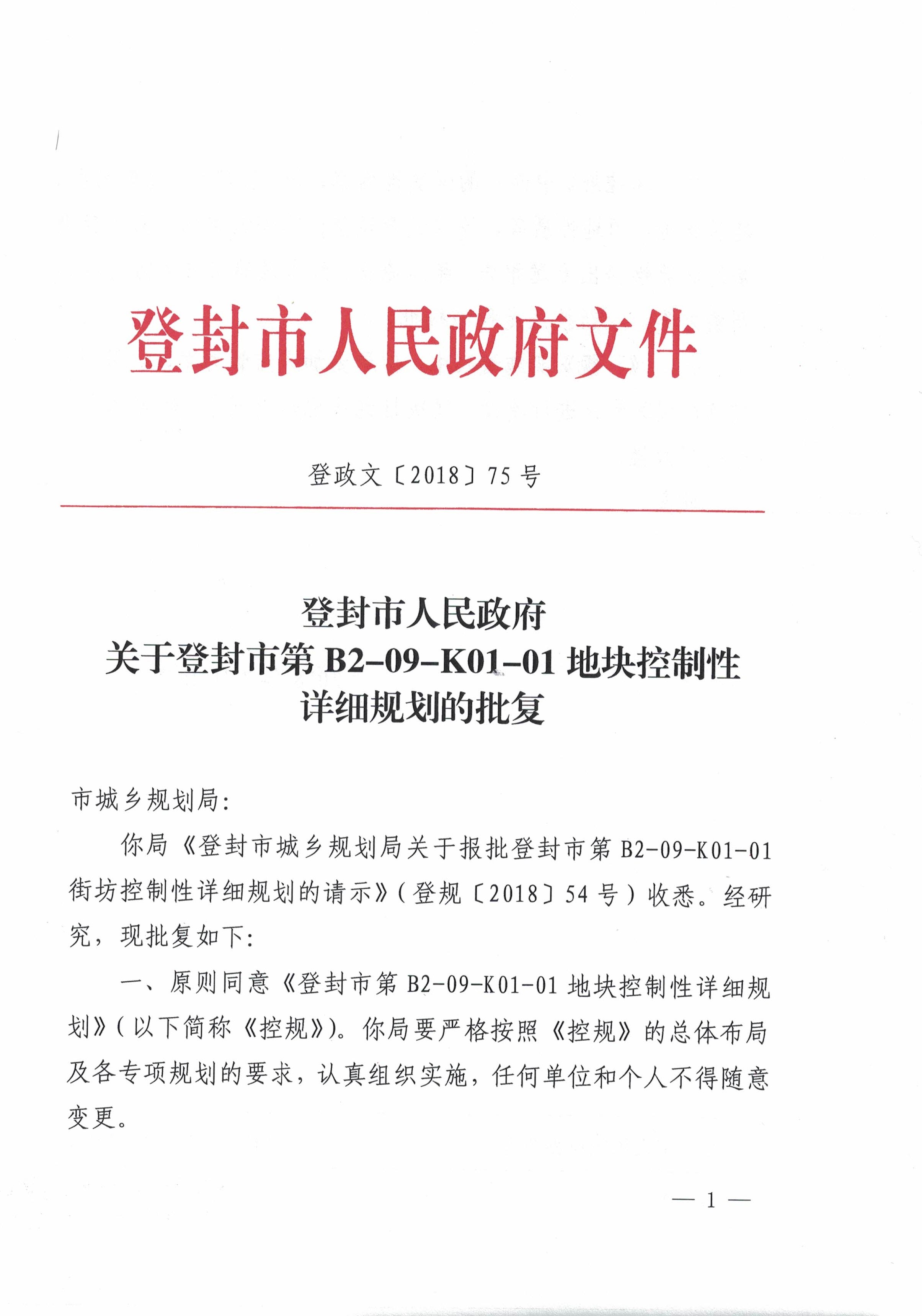 《登封市第B2-09-K01-01地块控制性详细规划》批后公告