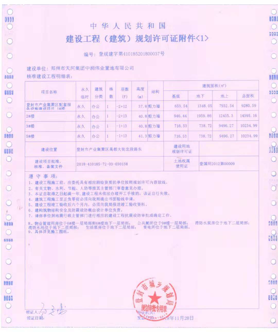 登封市产业集聚区配套服务设施工程建设工程规划许可证批后公告
