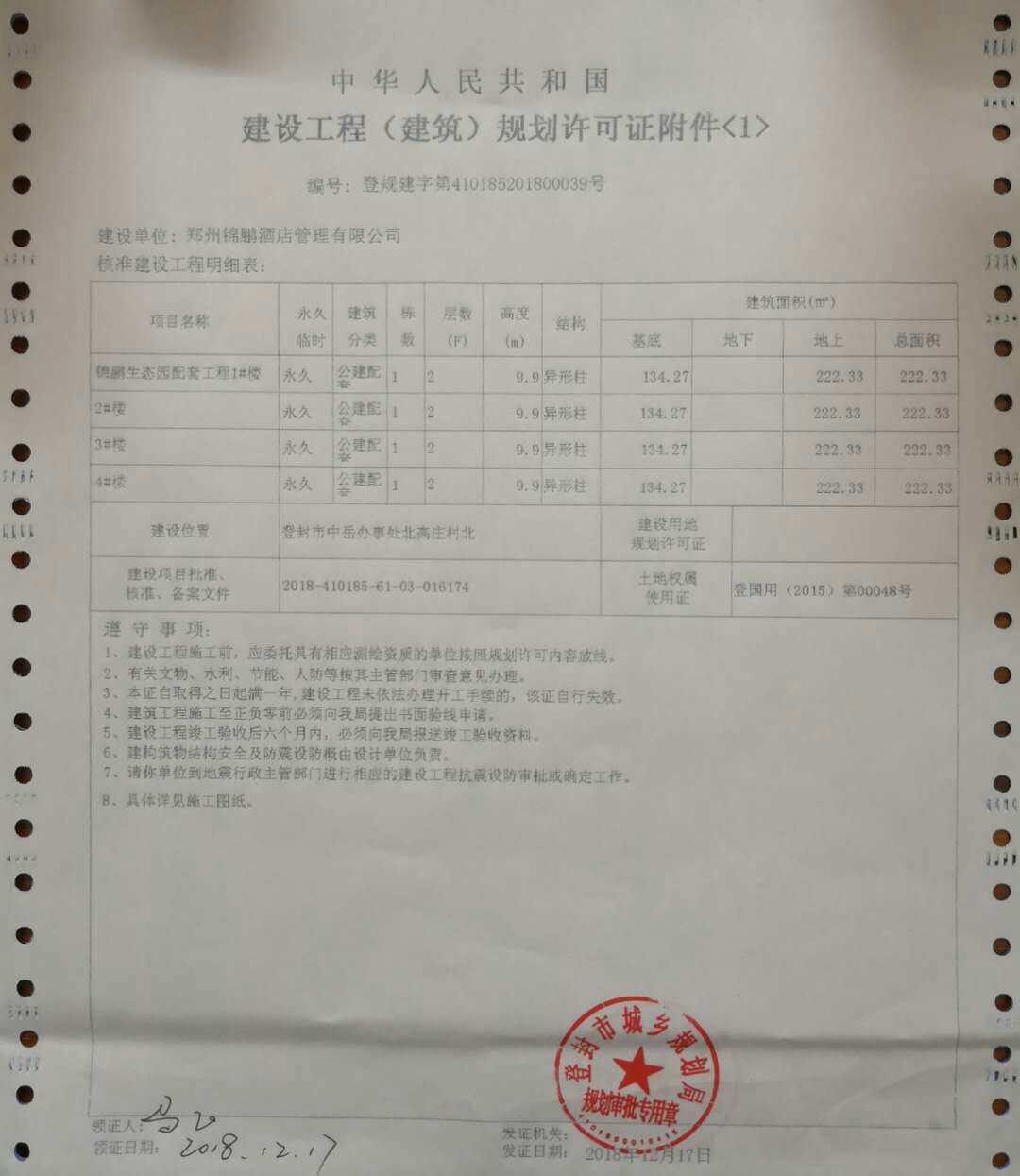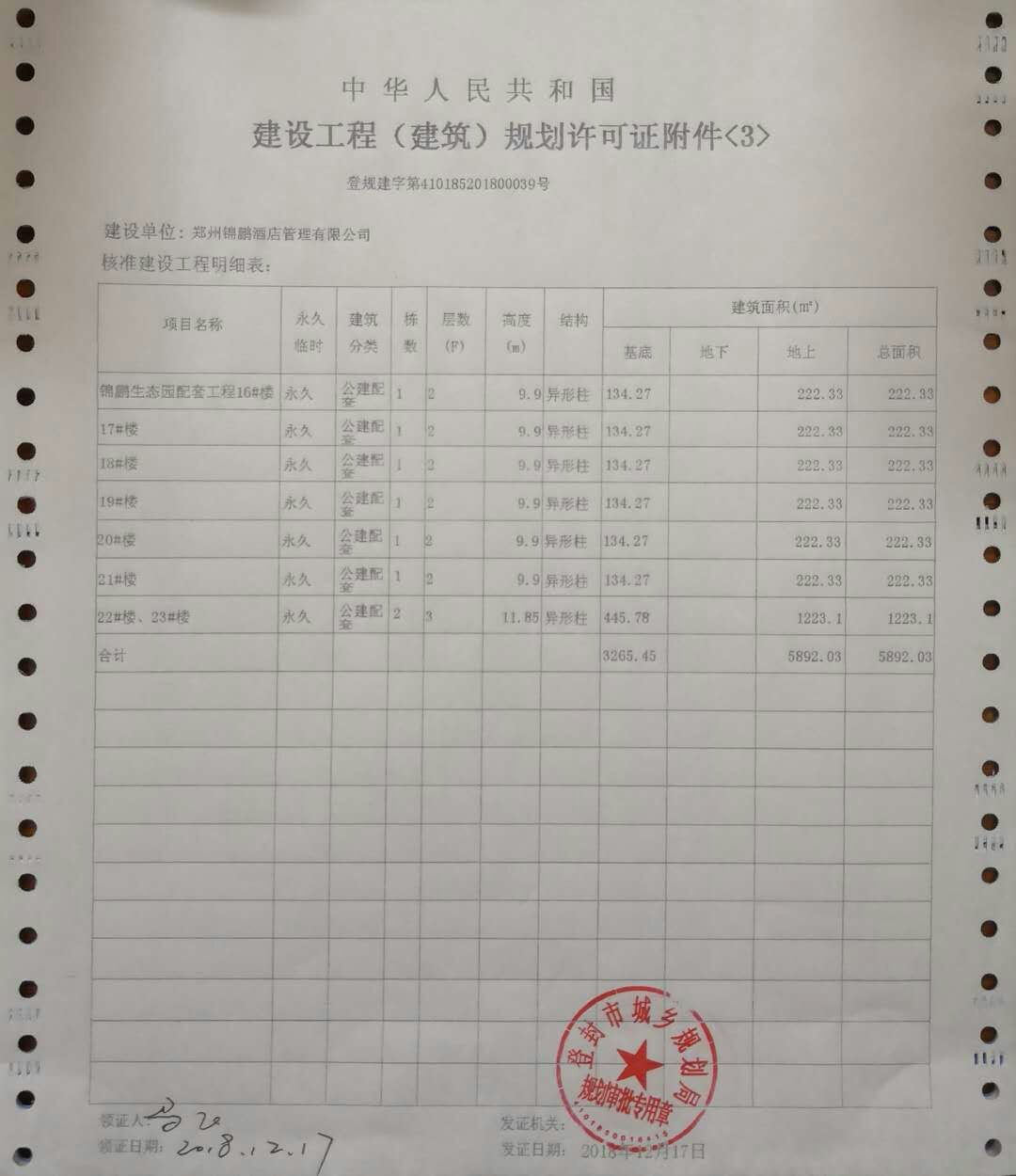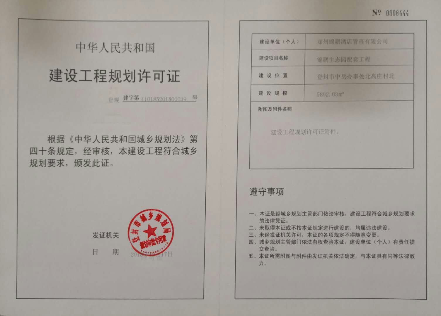 锦鹏生态园配套工程建设工程规划许可证批后公告