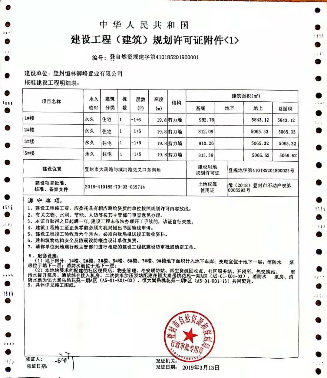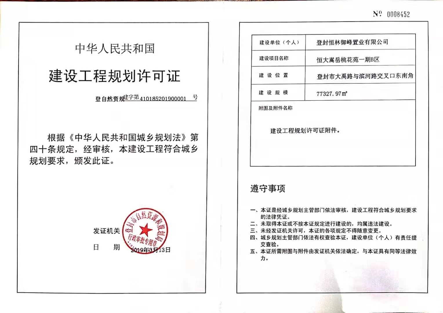 恒大嵩岳桃花苑一期B区项目建设工程规划许可证批后公告