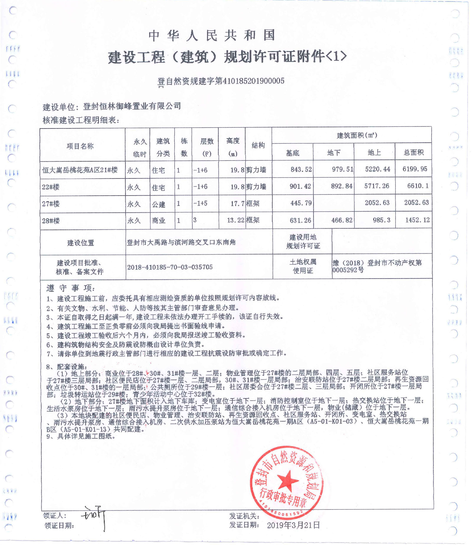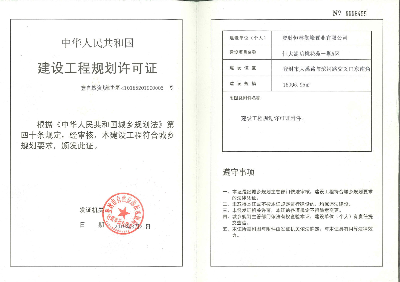 恒大嵩岳桃花苑一期A区项目建设工程规划许可证批后公告