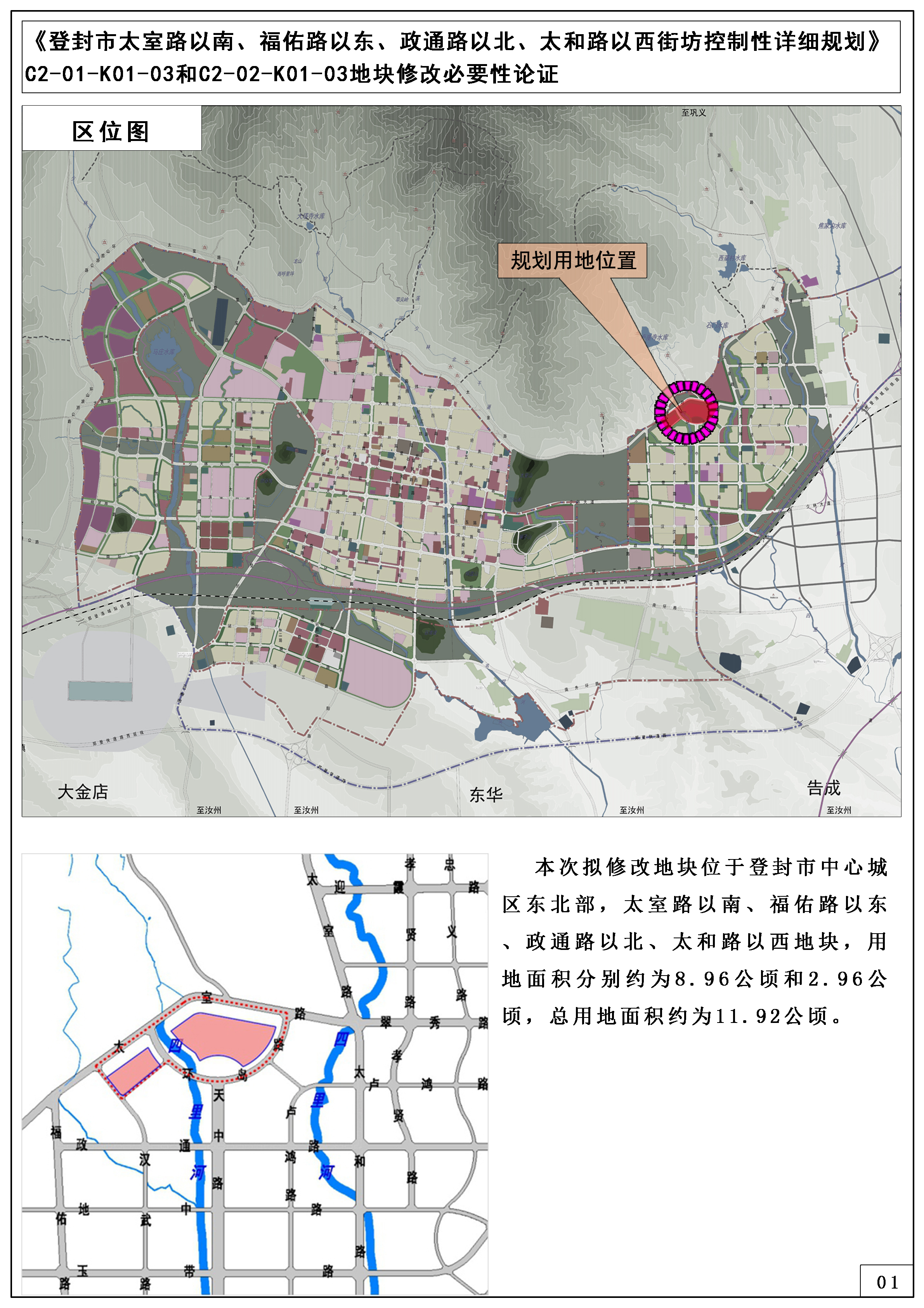 项目名称:《登封市太室路以南、福佑路以东、政通路以北、太和路以西街坊控制性详细规划》C2-01-K01-03和C2-02-K01-03地块修改必要性公示