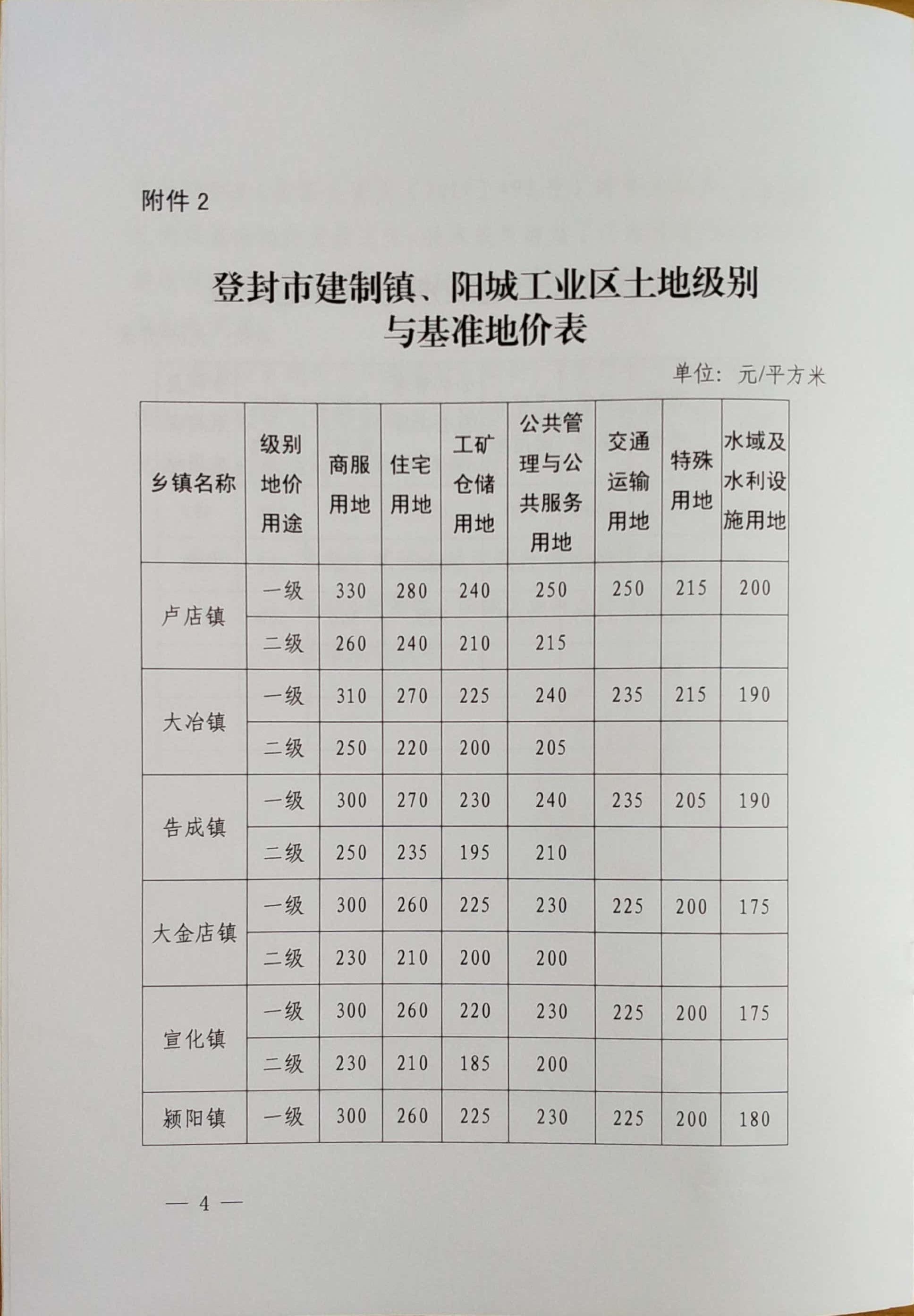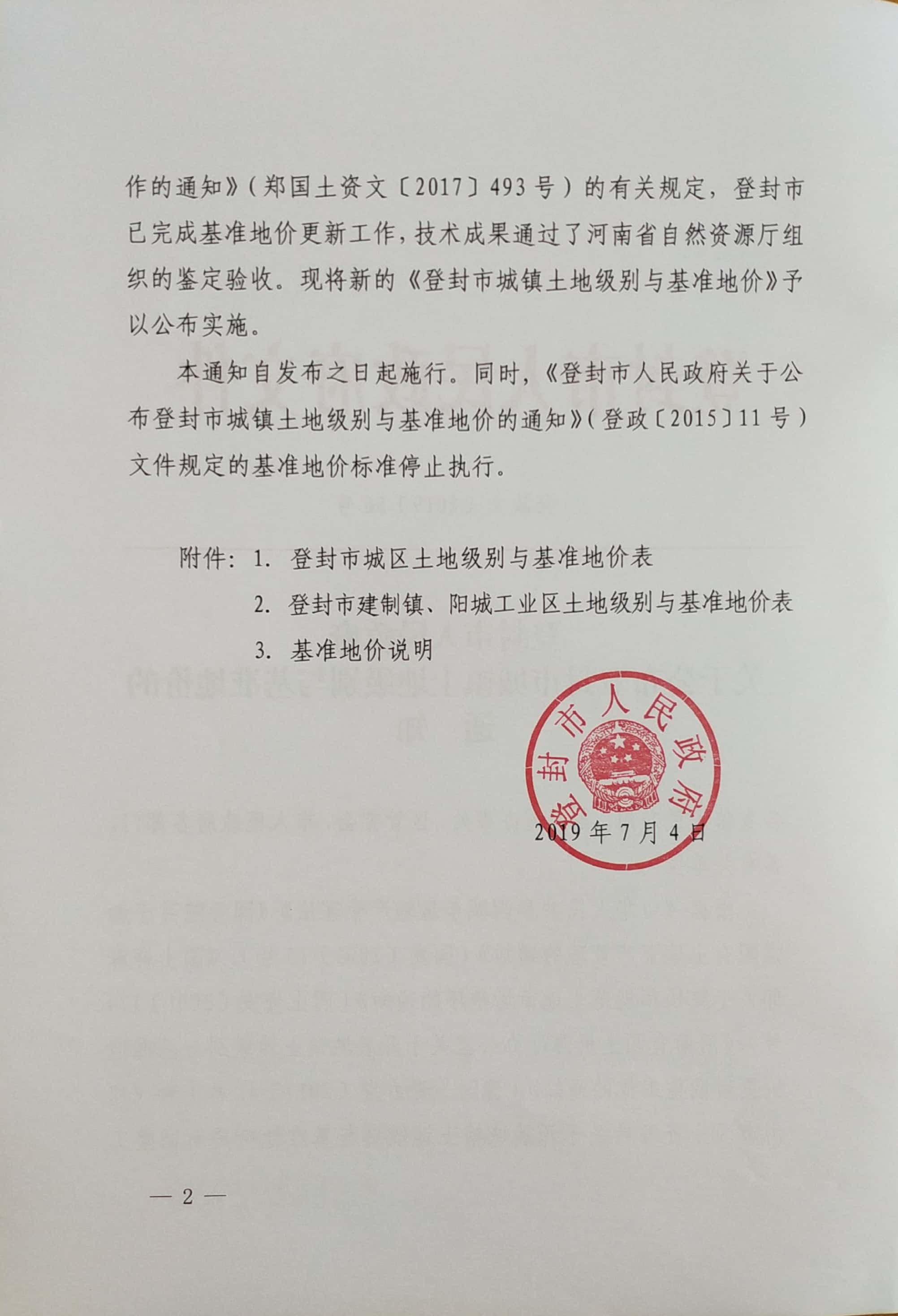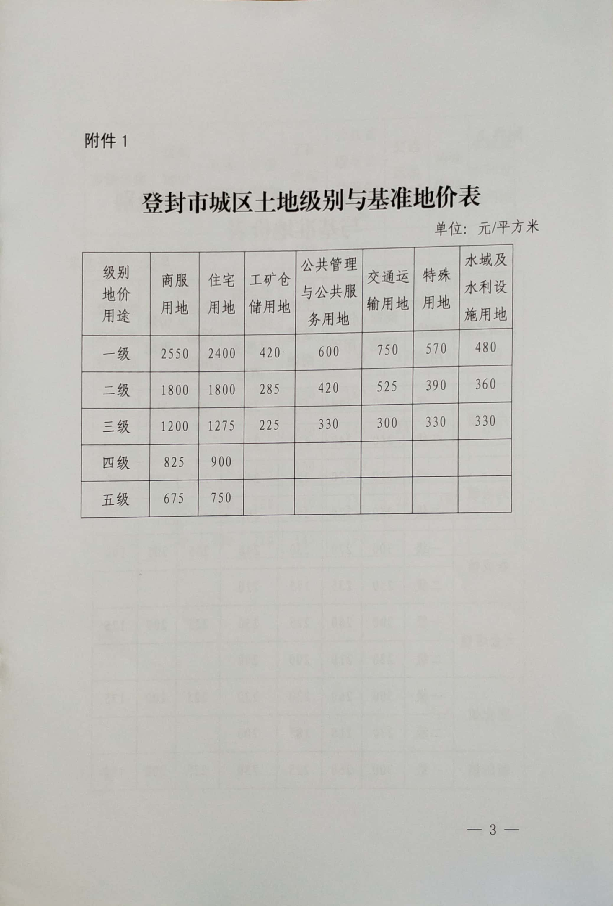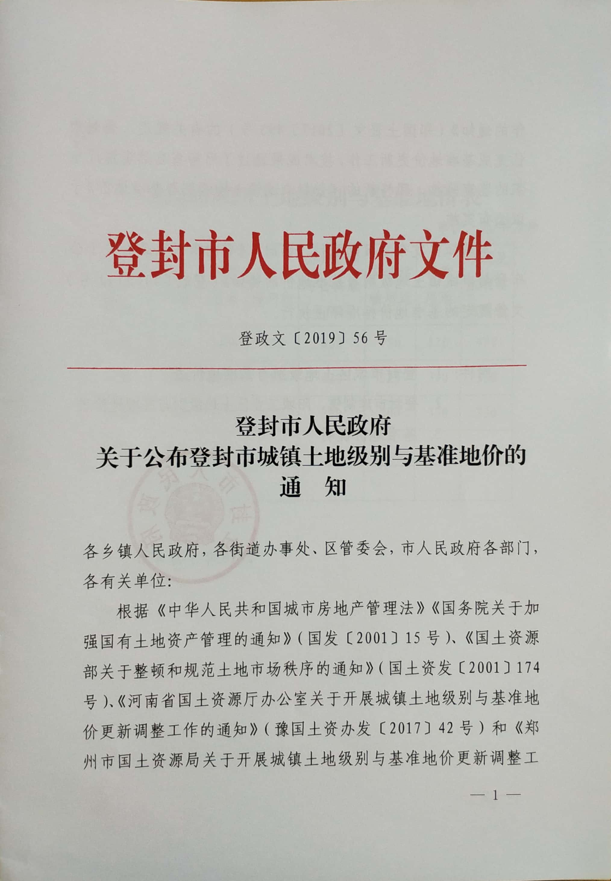 登封市人民政府关于公布登封市城镇土地级别与基准地价的通知