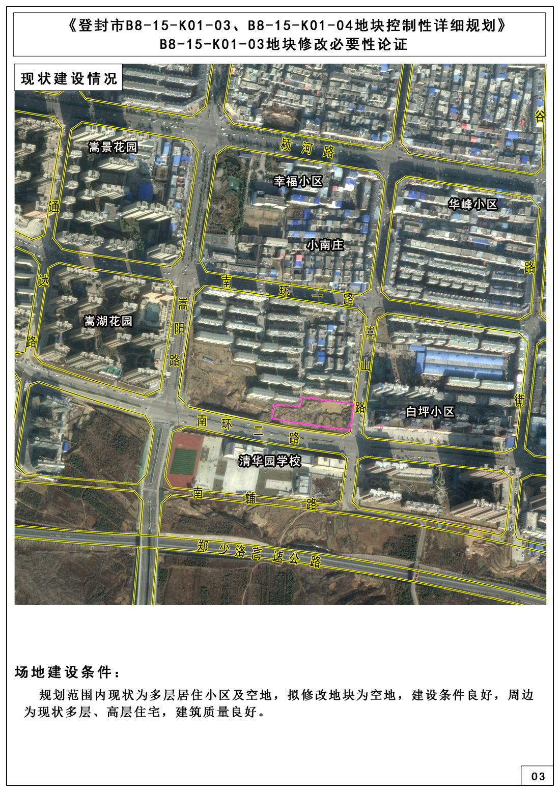 项目名称:《登封市B8-15-K01-03、B8-15-K01-04地块控制性详细规划》B8-15-K01-03地块修改必要性公示