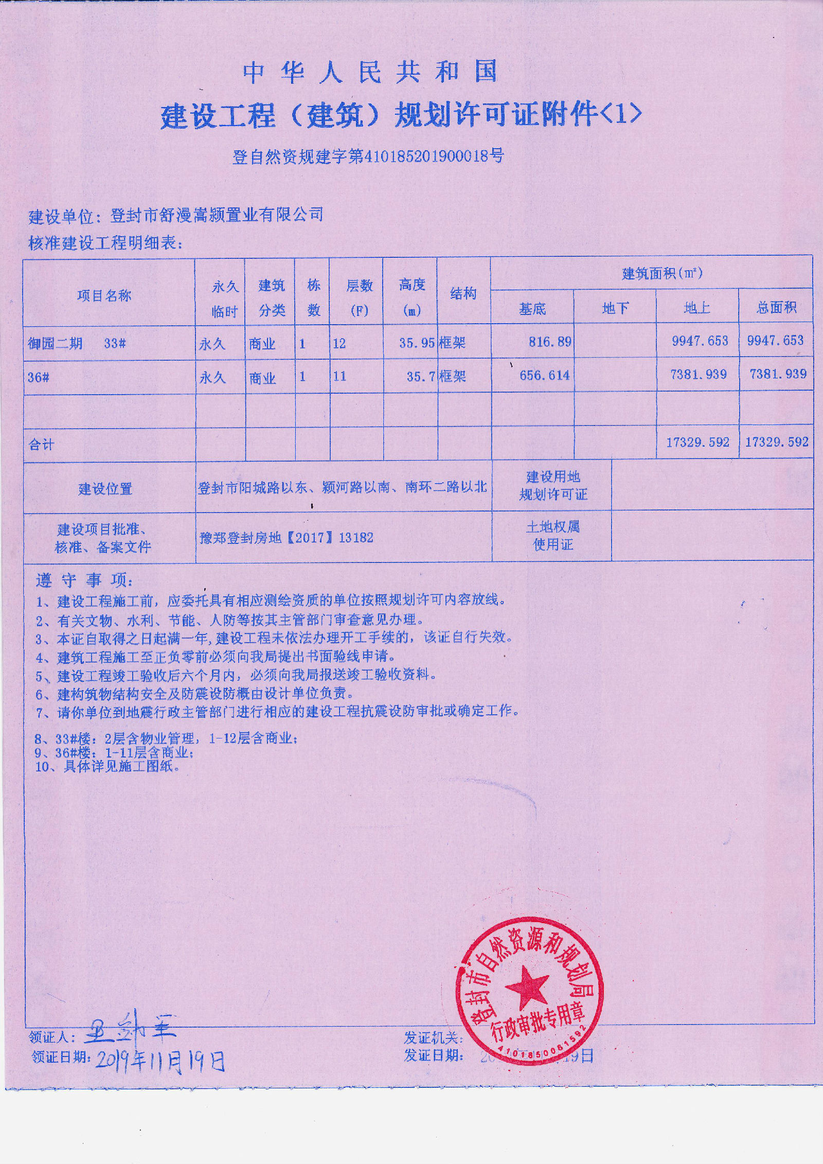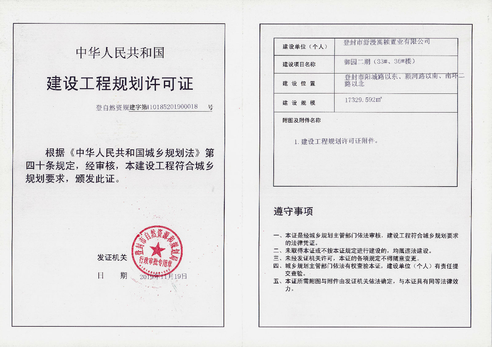 御园二期(33#、36#楼)项目建设工程规划许可证批后公告
