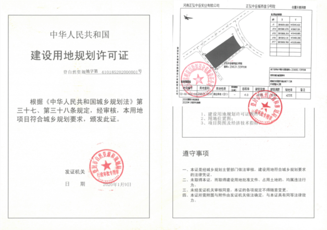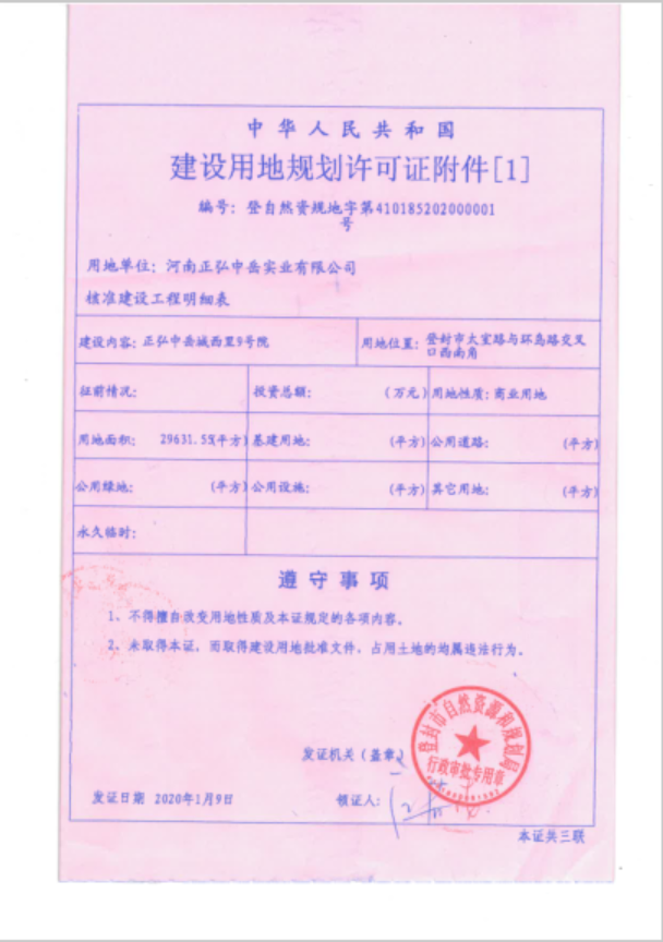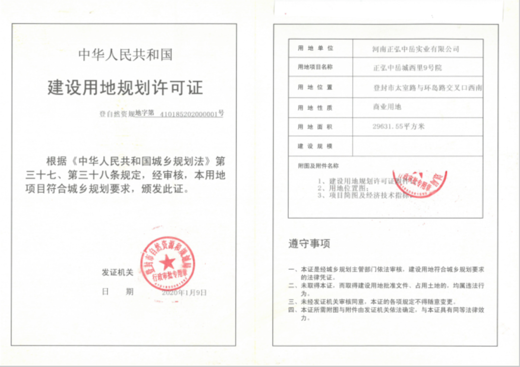 正弘中岳城西里9号院项目建设用地规划许可证批后公告