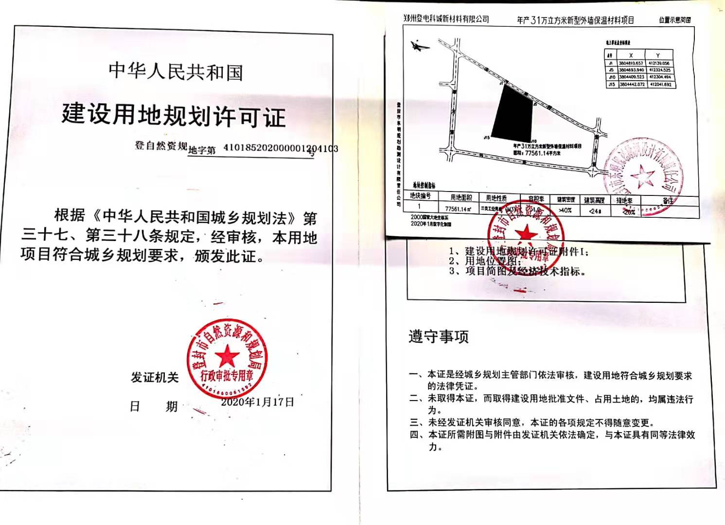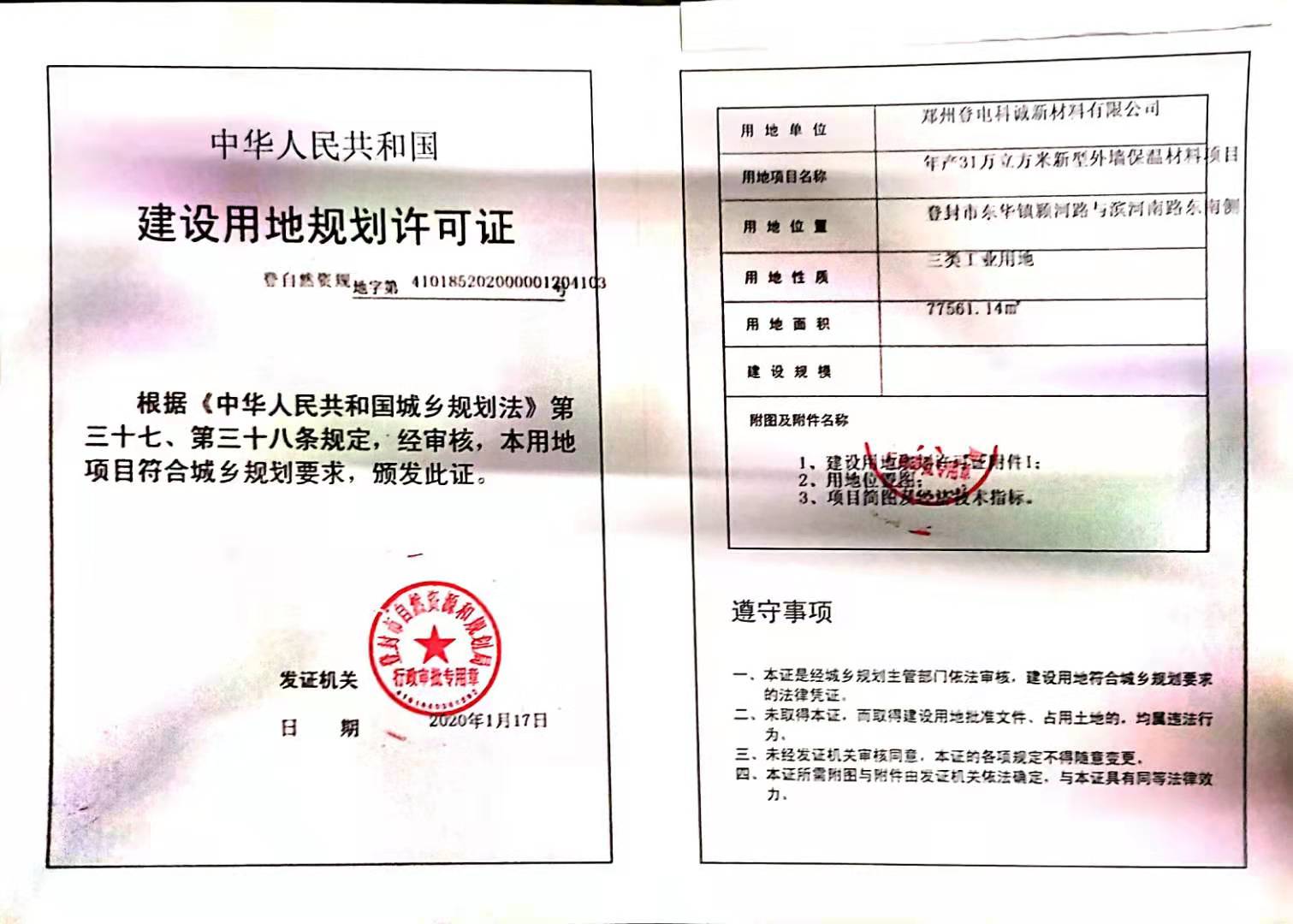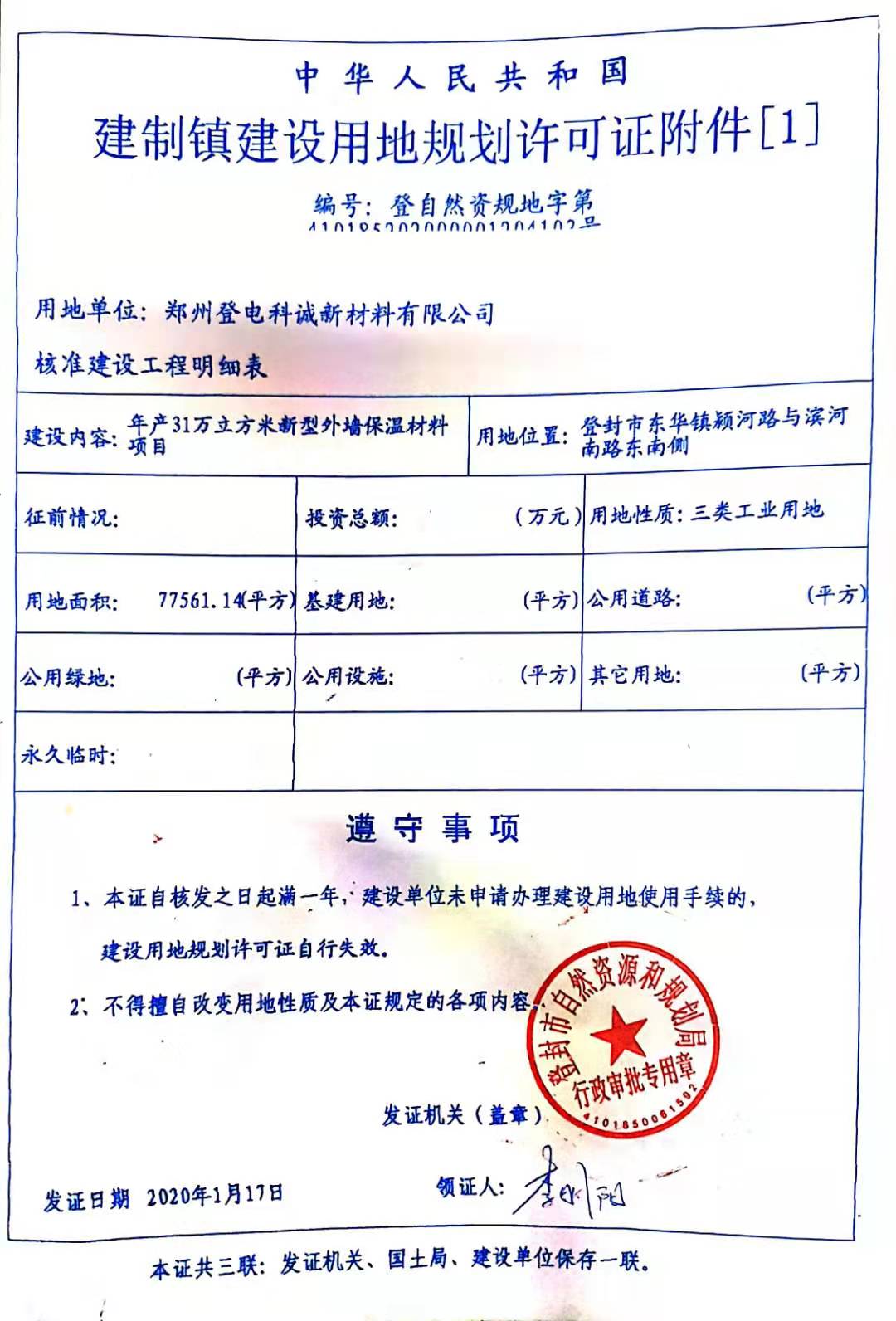 登封市自然资源和规划局关于年产31万立方米新型外墙保温材料项目建设用地规划许可证批后公告