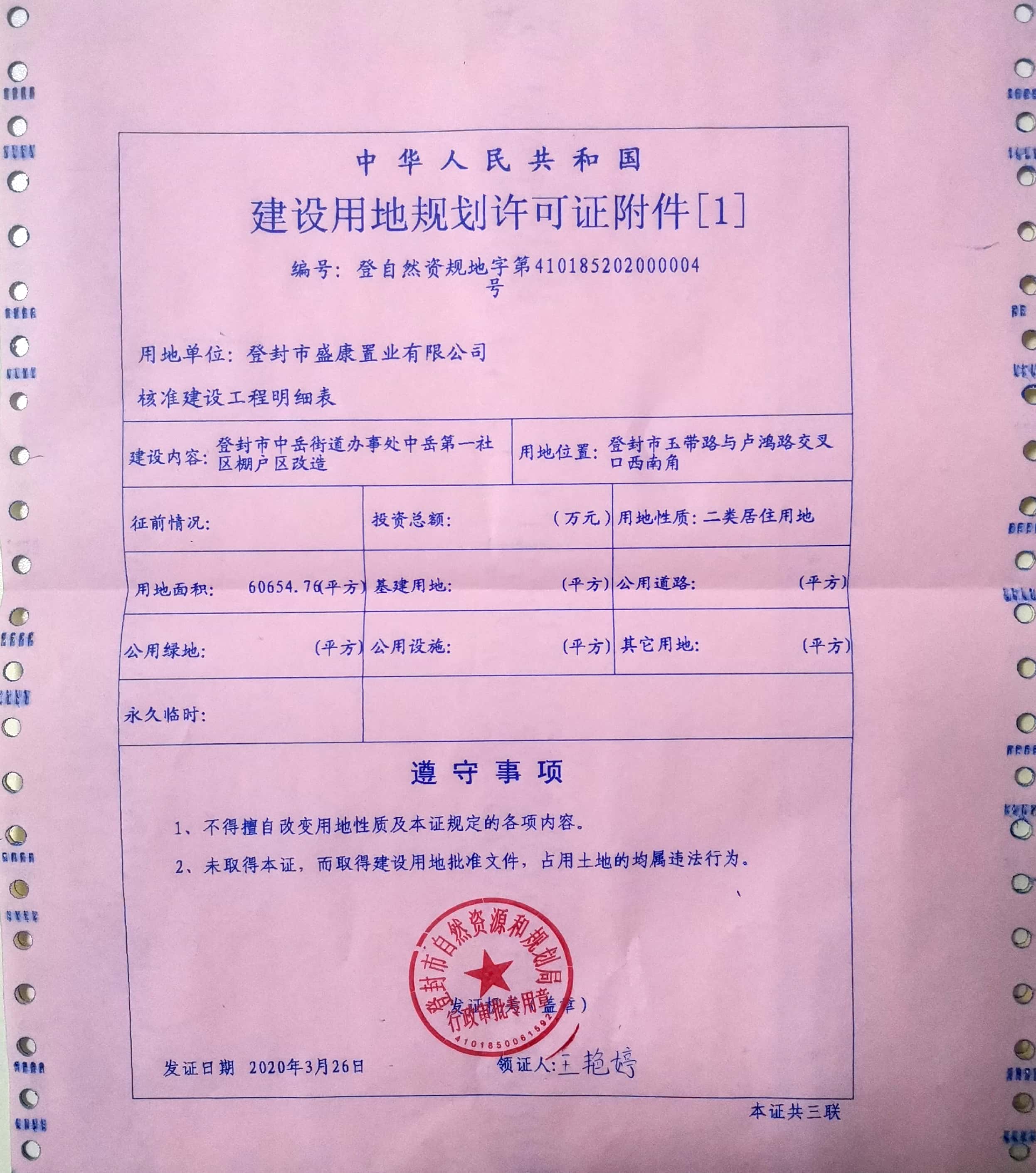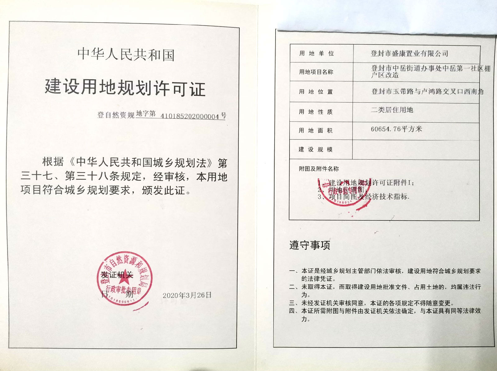 登封市自然资源和规划局登封市中岳街道办事处中岳第一社区棚户区改造建设用地规划许可证批后公告
