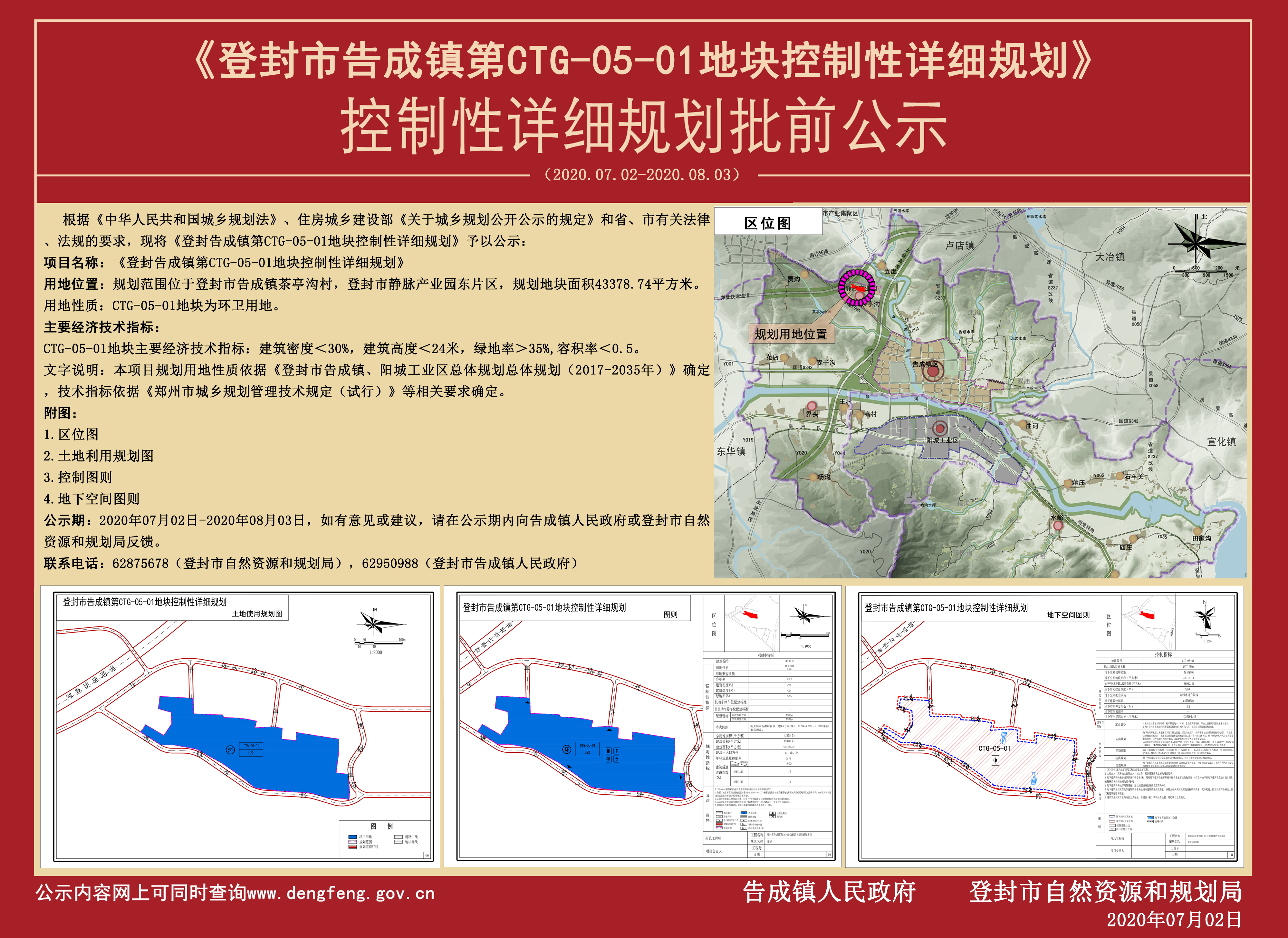《登封市告成镇第CTG-05-01地块控制性详细规划》控制性详细规划批前公示
