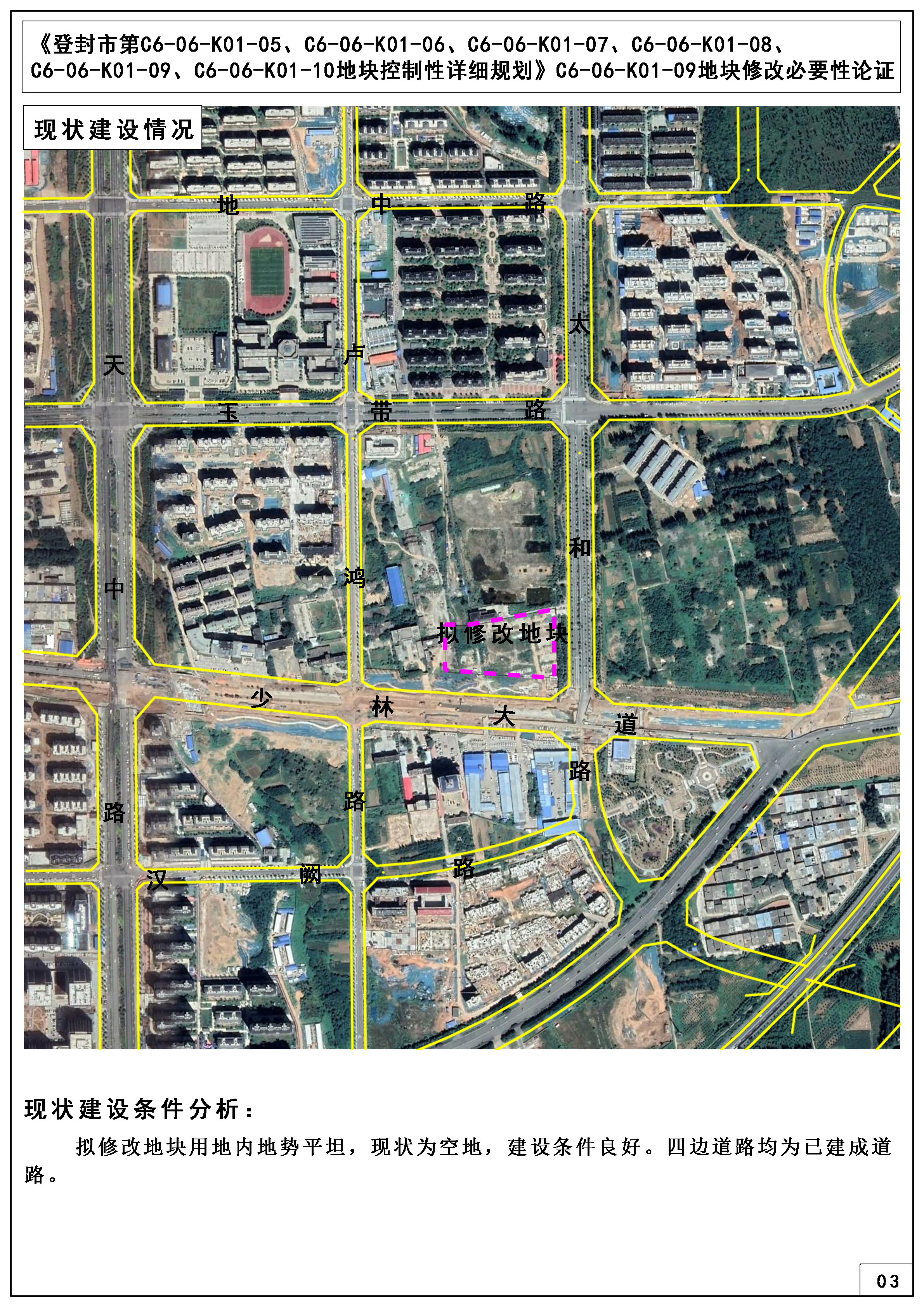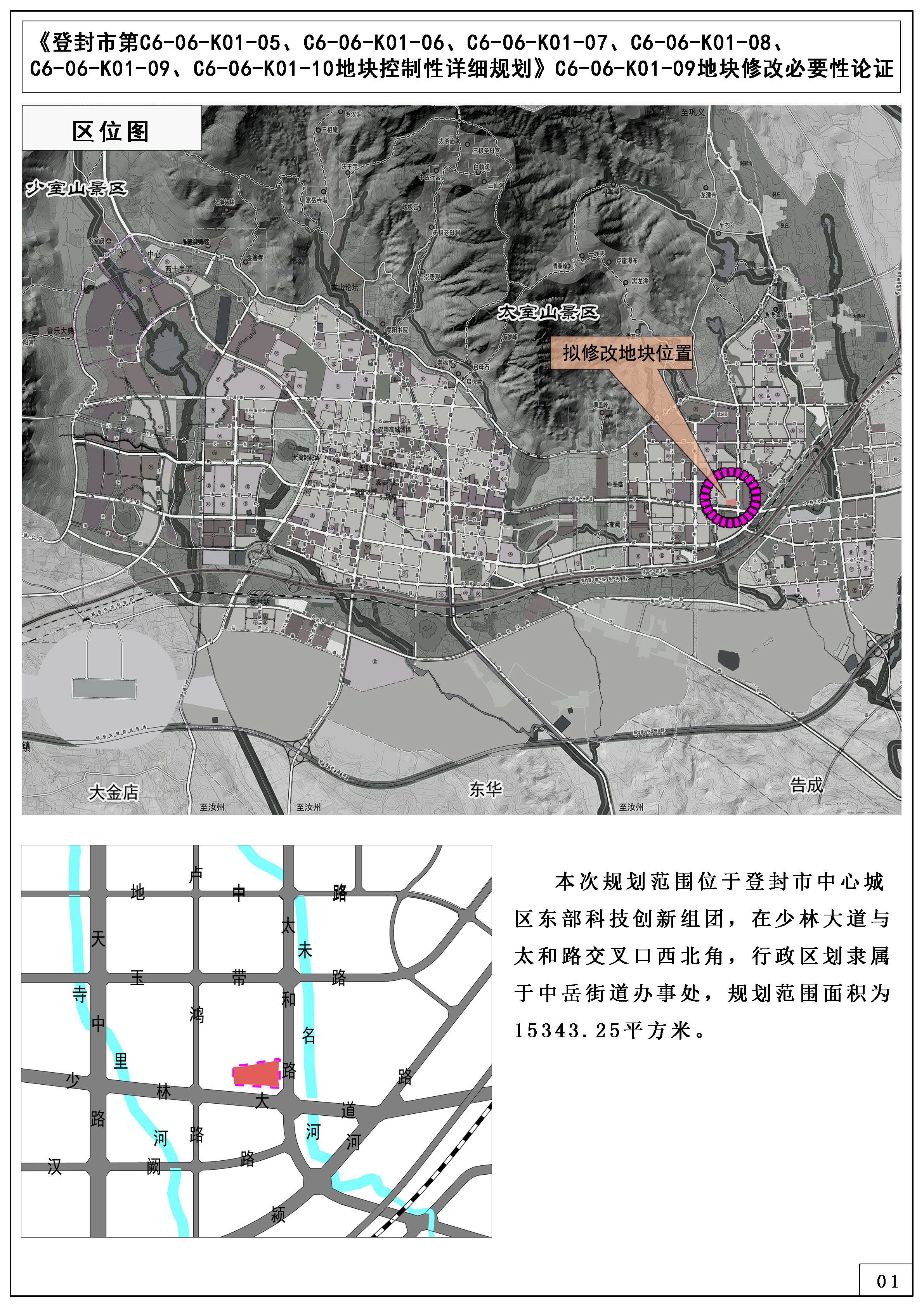 项目名称:《登封市第C6-06-K01-05、C6-06-K01-06、C6-06-K01-07、C6-06-K01-08、C6-06-K01-09、C6-06-K01-10控制性详细规划》C6-06-K01-09地块修改必要性论证