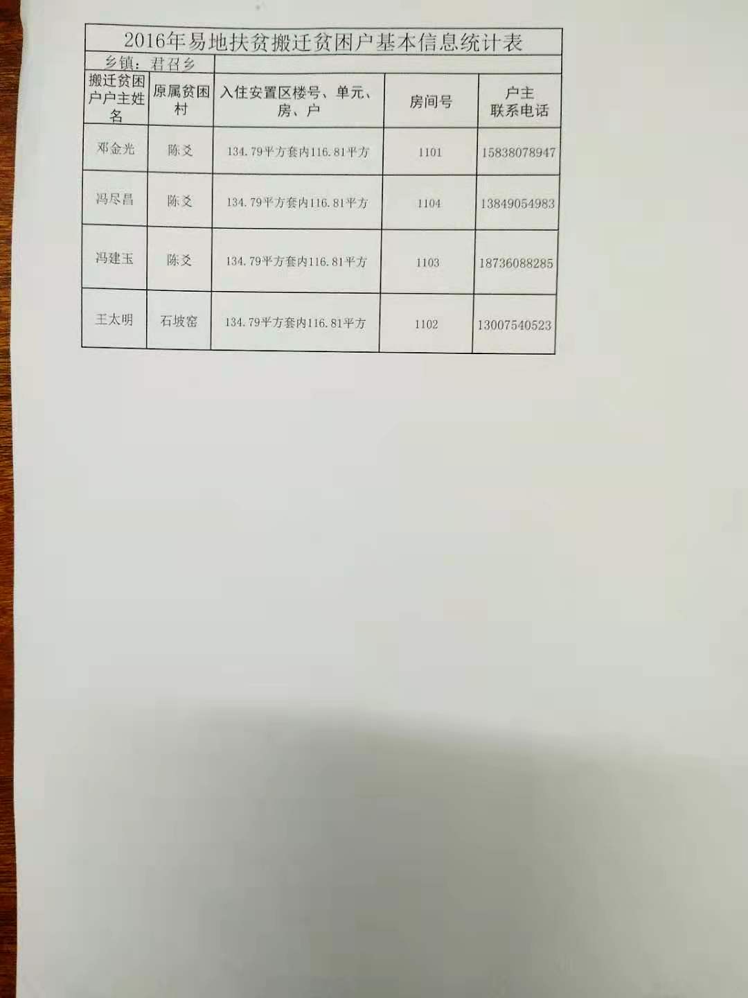 公示,君召乡,易地扶贫搬迁