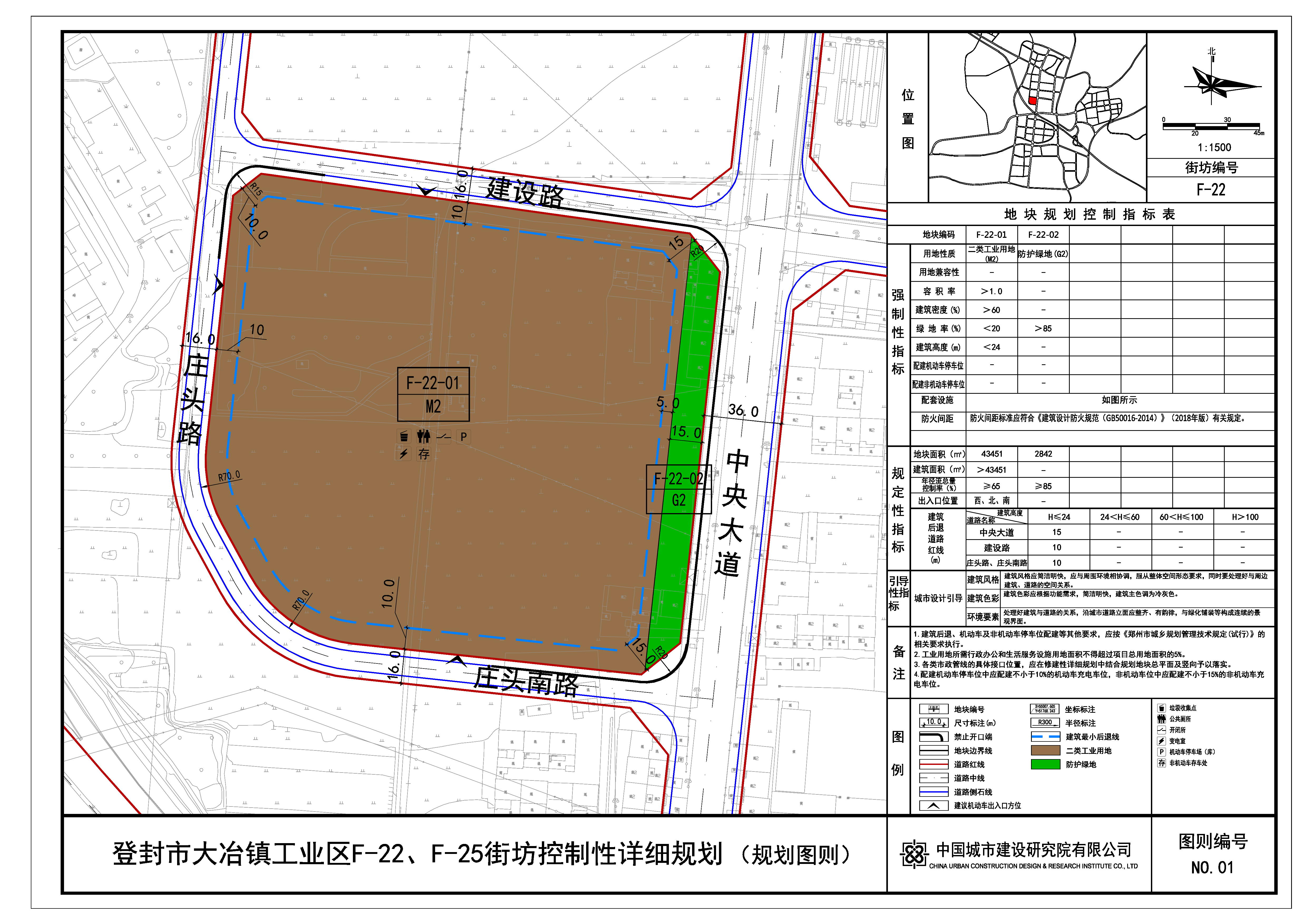 登封市自然资源和规划局关于《登封市大冶镇工业区F-22、F-25街坊控制性详细规划》的批前公示