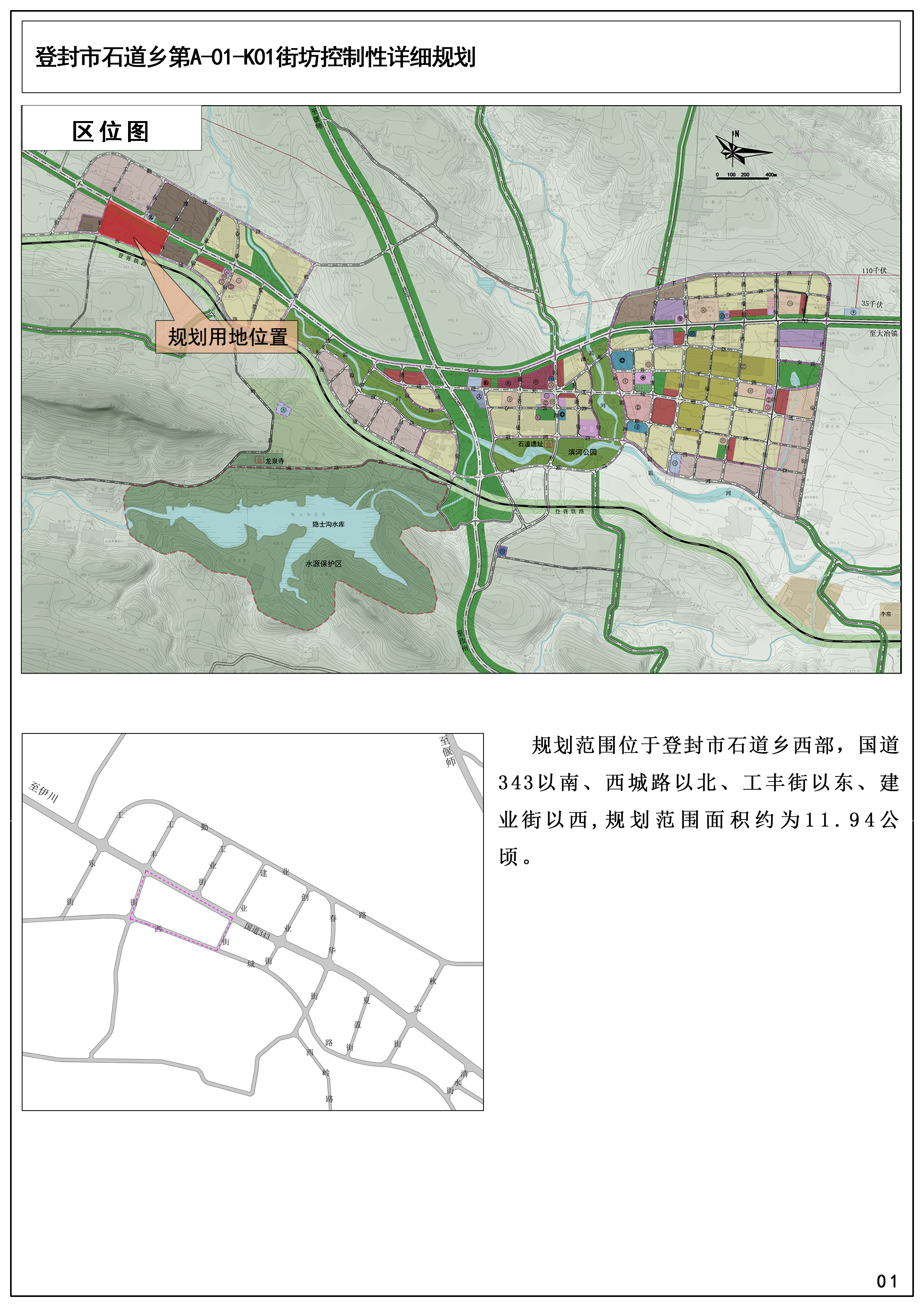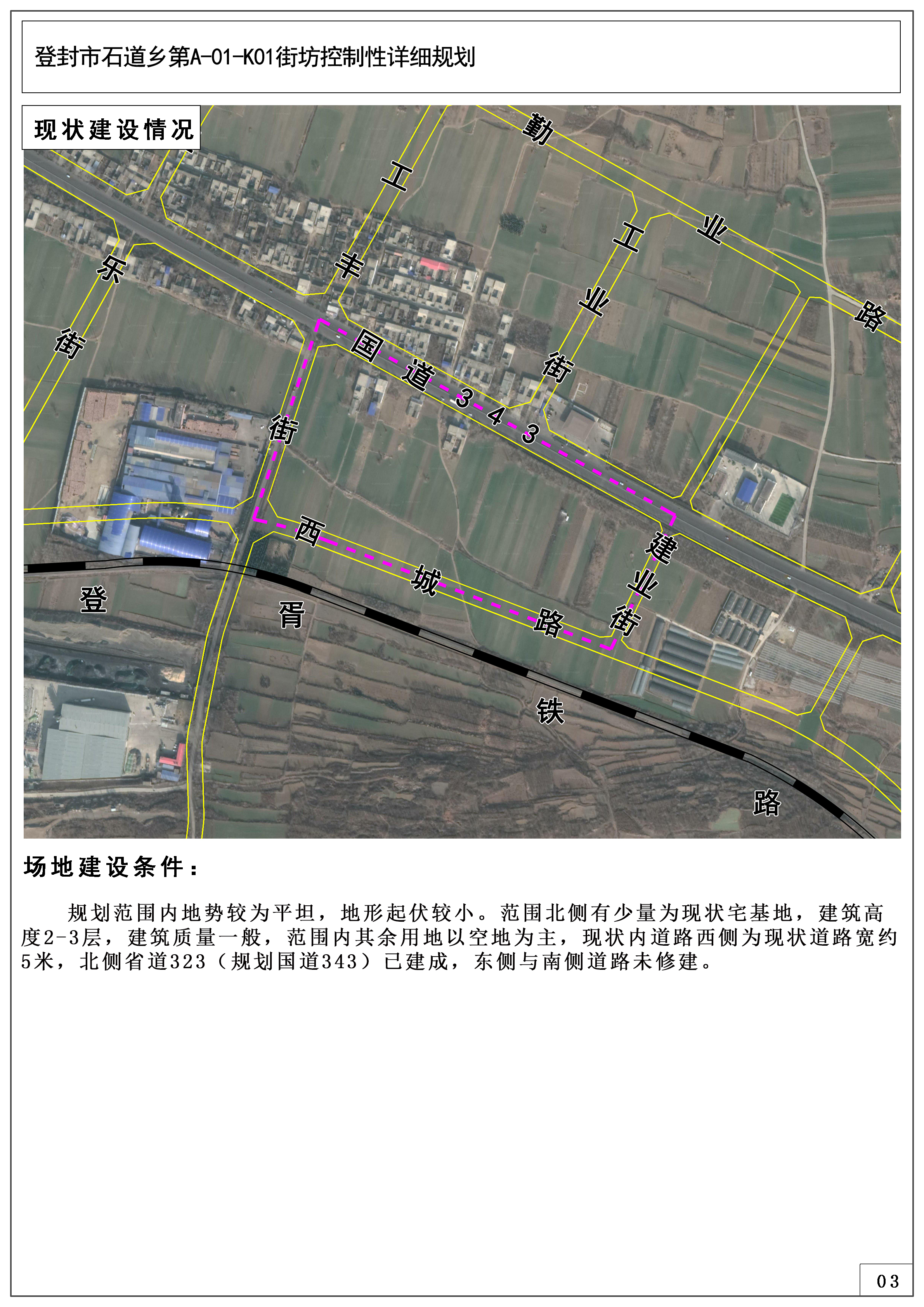 用地位置:规划街坊位于登封市石道乡国道343、工丰街、西城路、建业街围合区域。