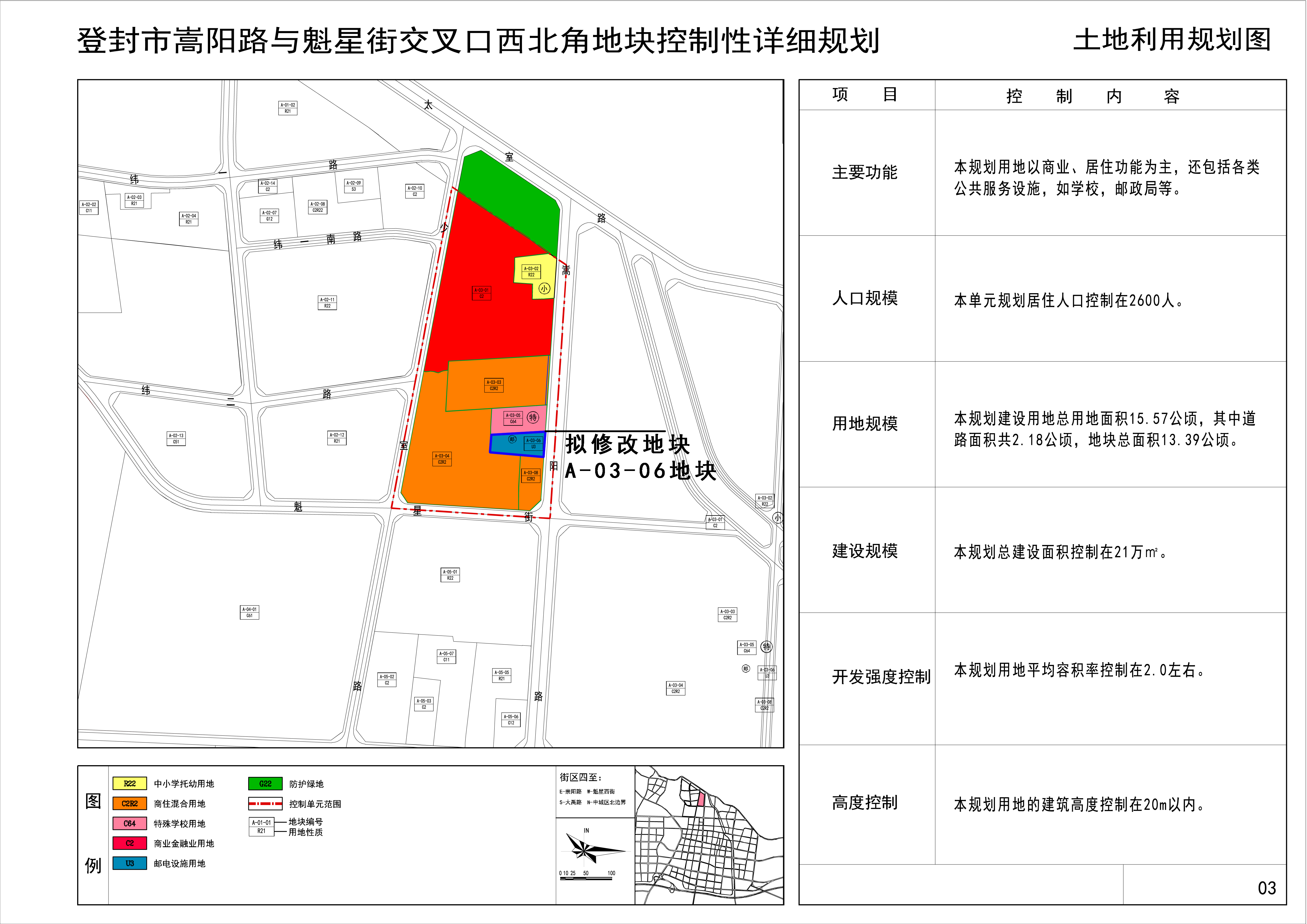 项目名称:《登封市嵩阳路与魁星街交叉口西北角地块控制性详细规划》A-03-06地块修改必要性论证