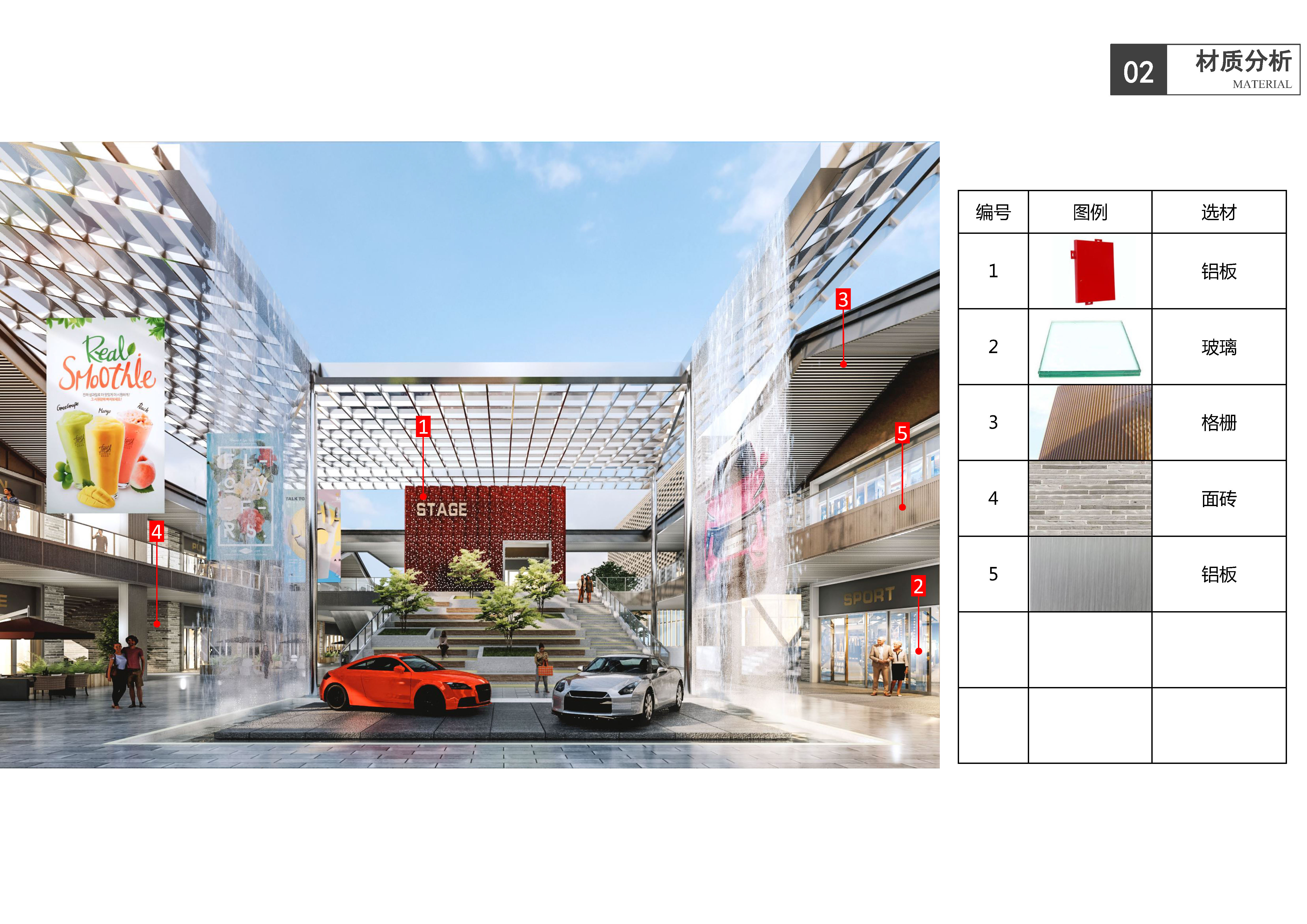 1.总平面图 2.指标表 3.鸟瞰图 4.材质分析1 5.材质分析2