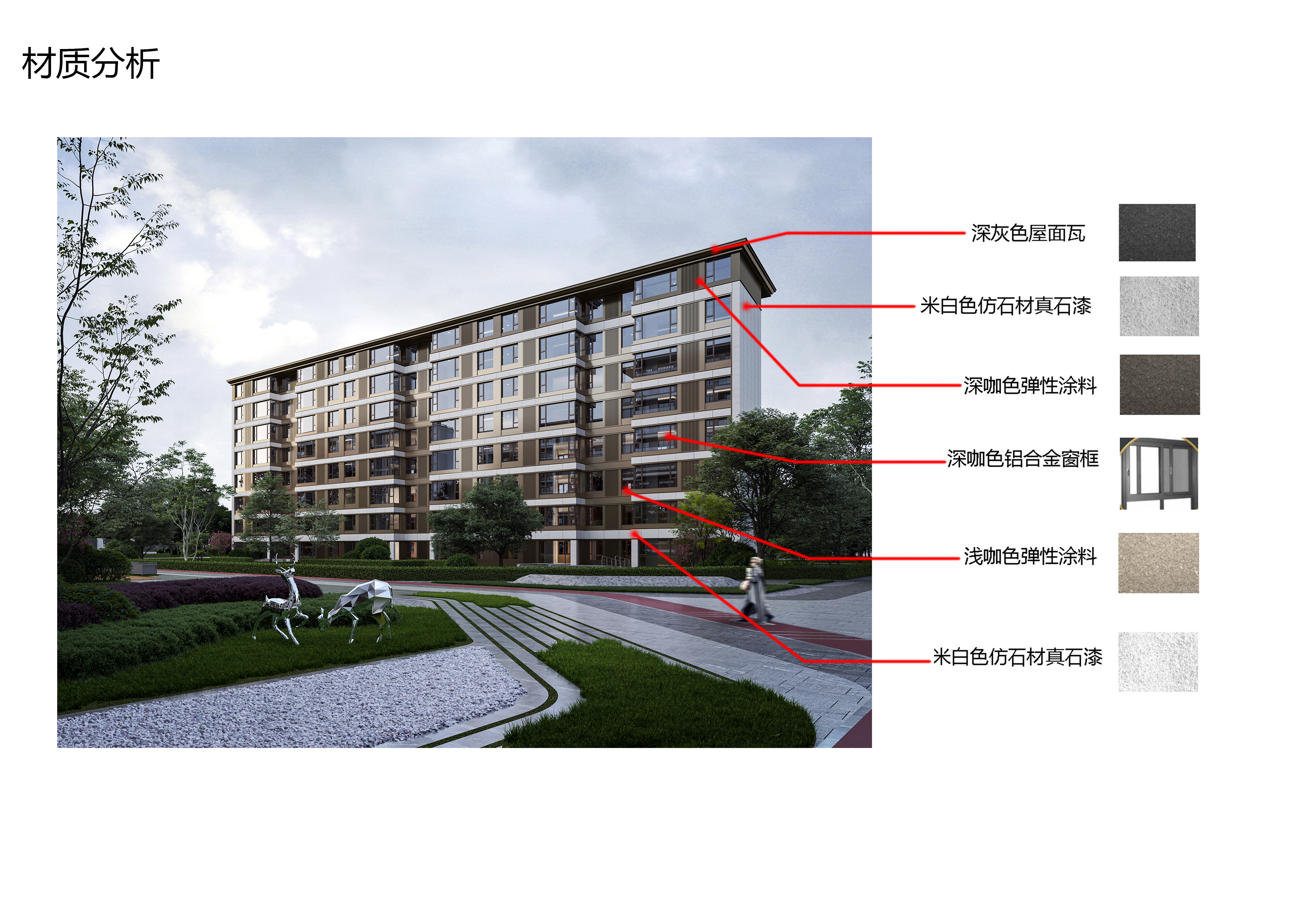 1.总平面图 2.指标表 3.鸟瞰图 4.材质分析 5.日照分析1 6.日照分析2