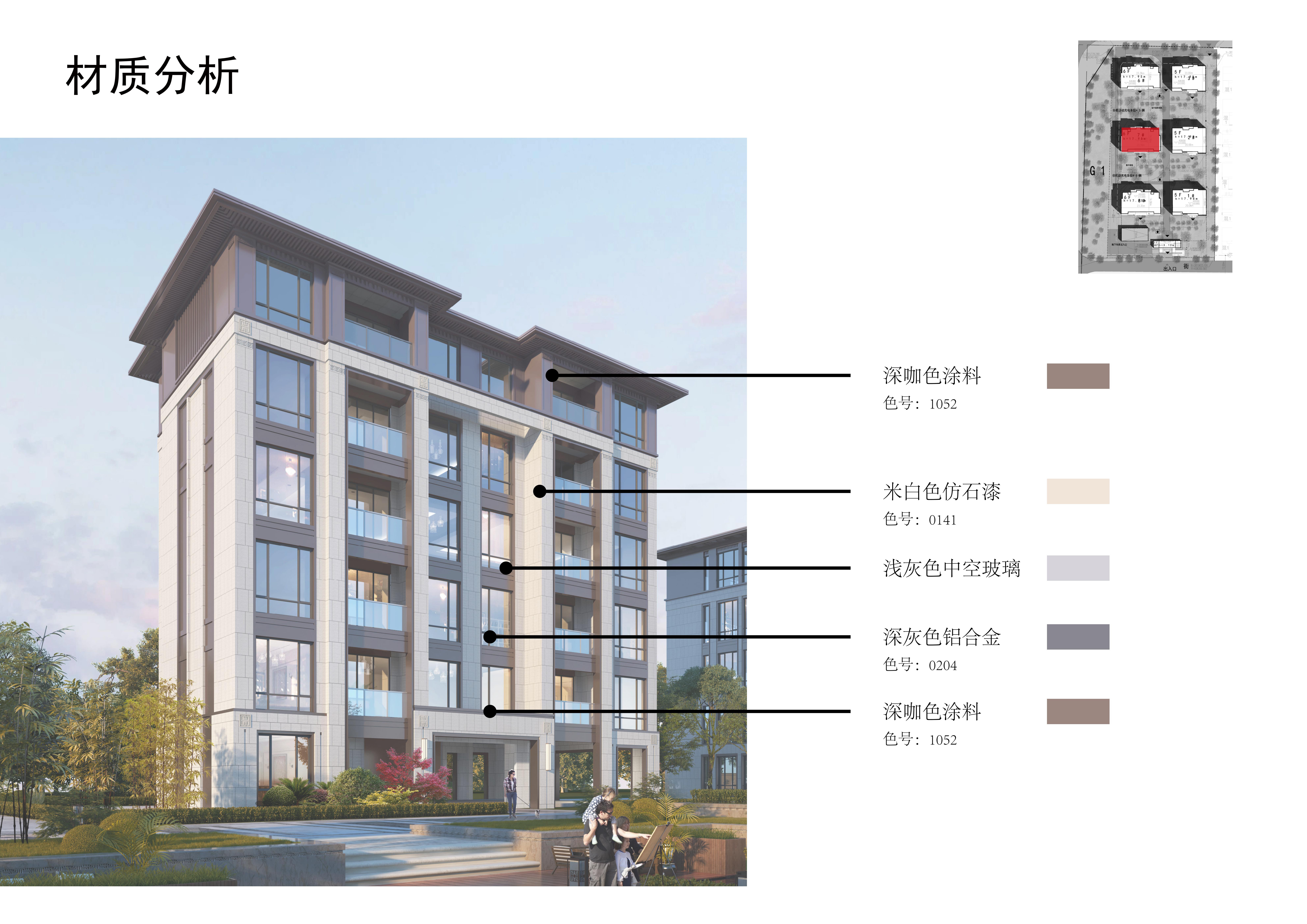 1.总平面图 2.指标表 3.鸟瞰图 4.材质分析 5.日照分析