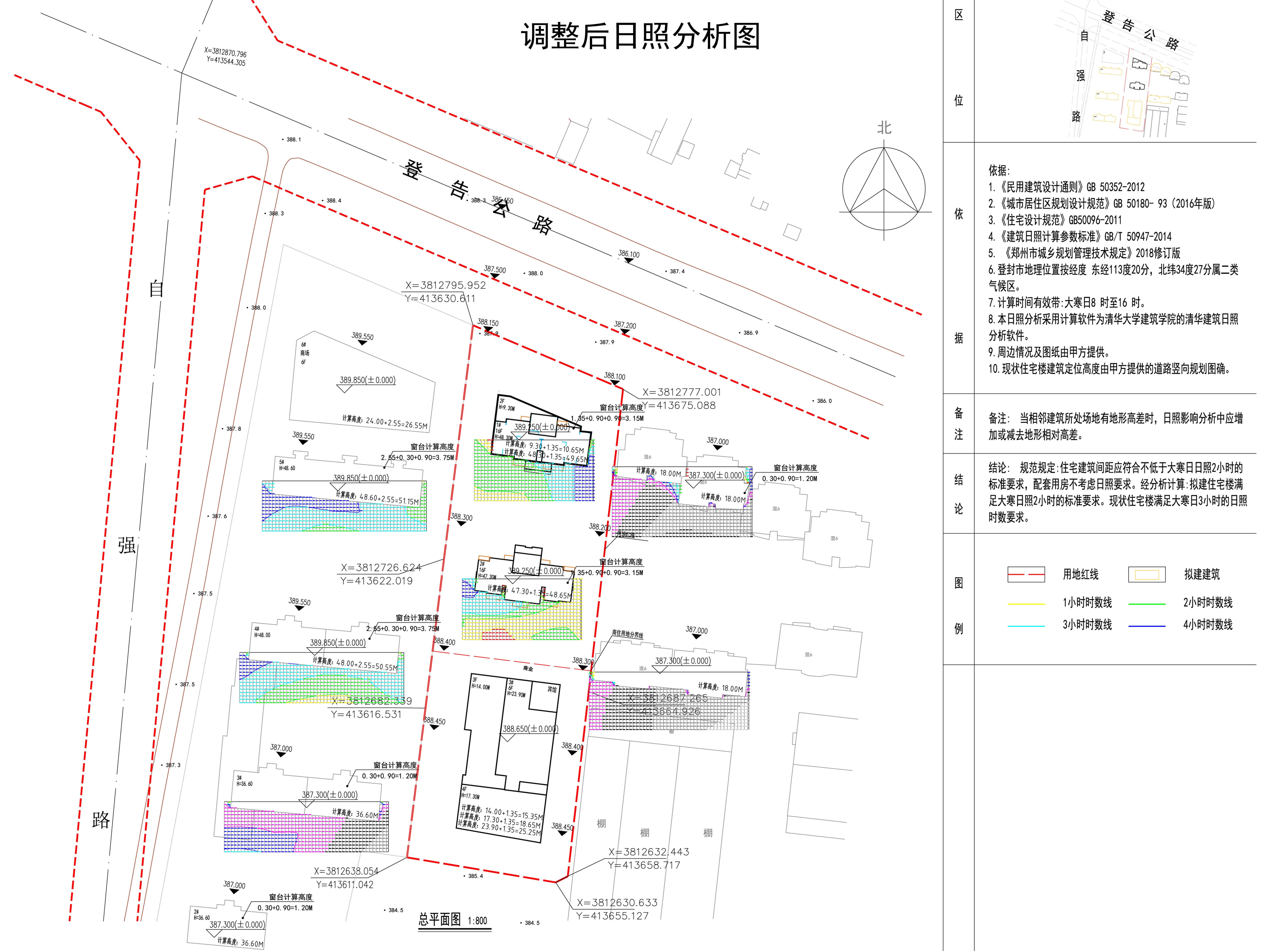 1.原总平面图 2.调整后总平面图 3.变更内容示意 4.调整后日照分析