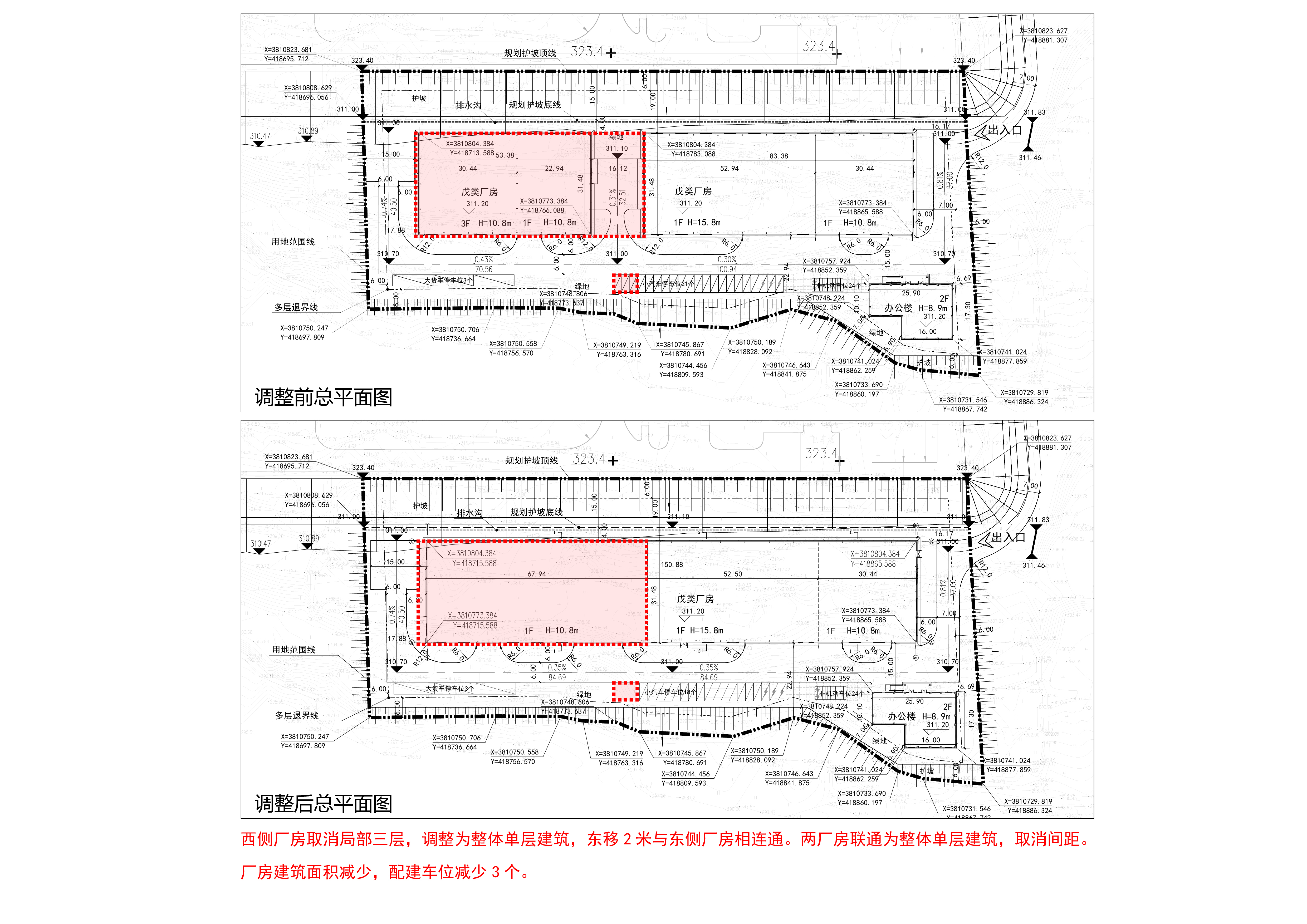 1.原总平面图 2.调整后总平面图 3.变更内容示意