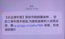如果市场主体收到包含网站链接、关注公众号的陌生短信或电话,提醒“年报公示、工商年报、营业执照异常”等内容,要求输入银行卡号和验证码、收费等信息,请一定提高警惕,切勿轻信来历不明的电话或短信,不要盲目输入个人信息,更不要直接转账汇款,谨防上当受骗。