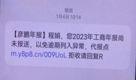 注意,这是诈骗电话、短信,市场监管部门不会以任何理由对年报收取任何费用,请广大企业和社会公众谨防诈骗!!
